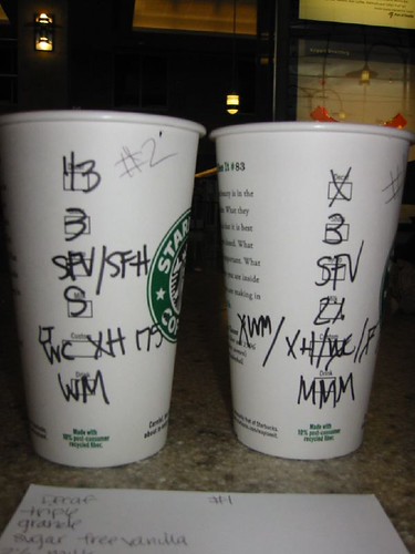 I remember when I first heard that word – I wrote a post about it.  There is a definite Starbuckian language, but have you noticed that there are different dialects of Starbuckian?  You can go to a Starbucks, order a particular drink in the best Starbuckian you know – then go to a different one, order it the same way and maybe get a totally different drink.  Sometimes you can get charged different prices for the same drink at a different locations.  You can be charged for extra milk in some places and other places give it to you for free.  So learn Starbuckian, but also realize that each location has a dialect.